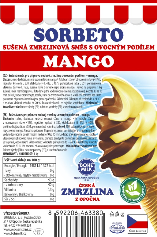 Oblíbené sorbetové zmrzliny, toto je například vynikající směs na mangovou zmrzlinu.