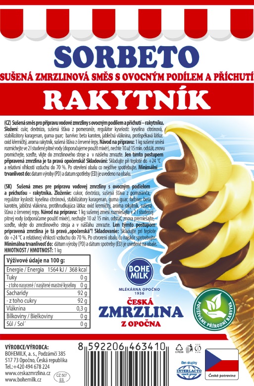 Oblíbené sorbetové zmrzliny, toto je například vynikající směs na rakytníkovou zmrzlinu.